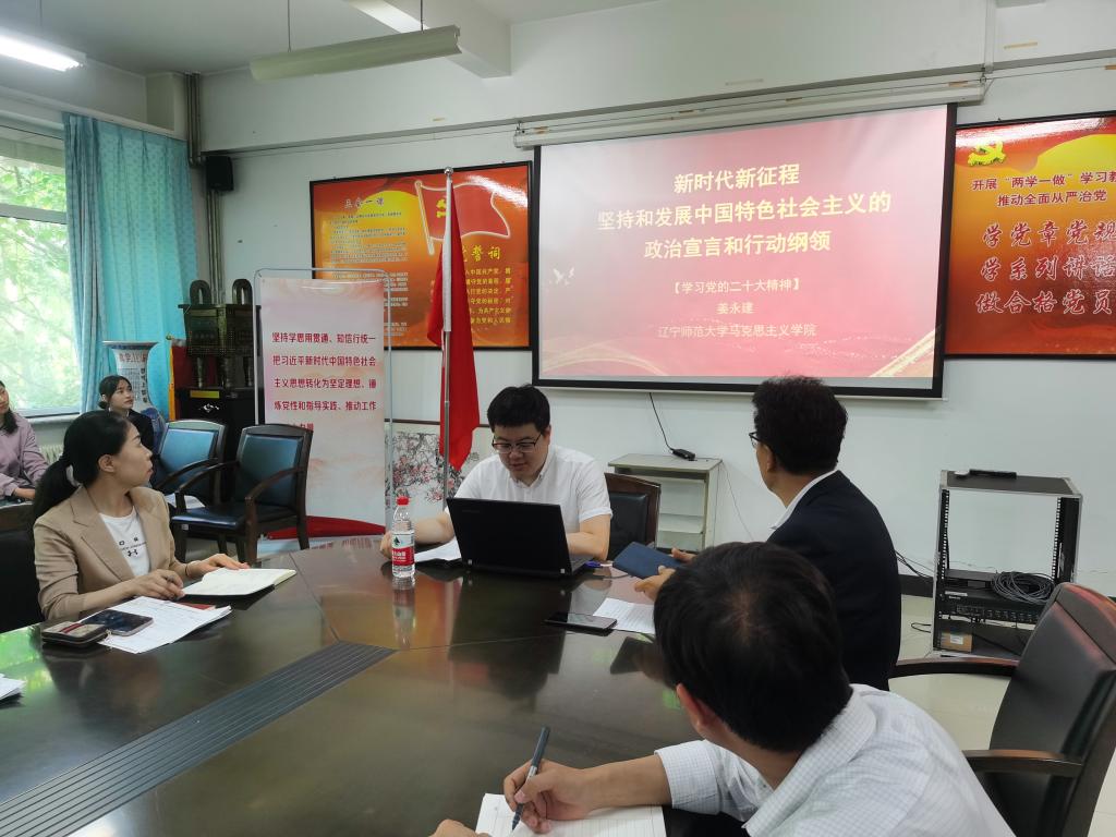 姜永建副教授以题为《新时代新征程坚持和发展中国特色社会主义的政治宣言和行动纲领》对党的二十大的战略定位、大会主题、实践基础、理论指导四个方面进行了专题辅导。