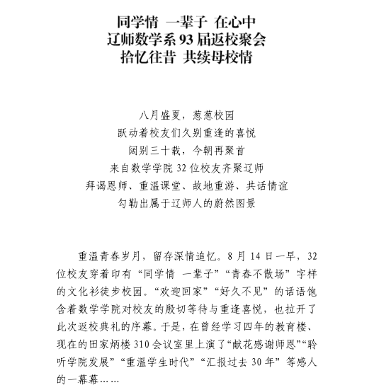 同学情 一辈子 在心中 辽师数学系93届返校聚会 拾忆往昔 共续母校情