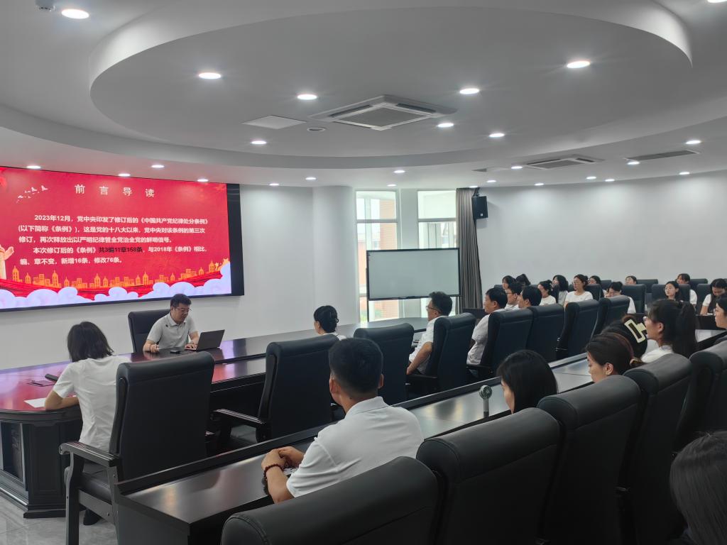 姜永建副教授进行《中国共产党纪律处分条例》解读培训。党委书记杨俊福、院长沈洁、党委副书记李玉新、副院长张杰等党委委员及17名新发展党员和部分党员代表参加了会议,李玉新副书记主持宣誓大会。