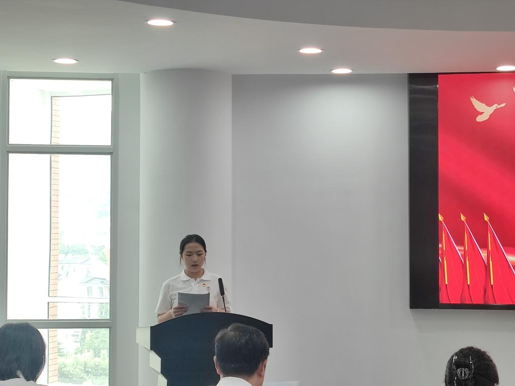 2021级本科生佟思宏代表新党员发言,首先感谢党组织的关心、培养和教育,要以实际行动践行对党的誓言,坚定为党的事业奋斗终生的决心,立志以青春的智慧和汗水书写无愧于党和人民的人生华章。
