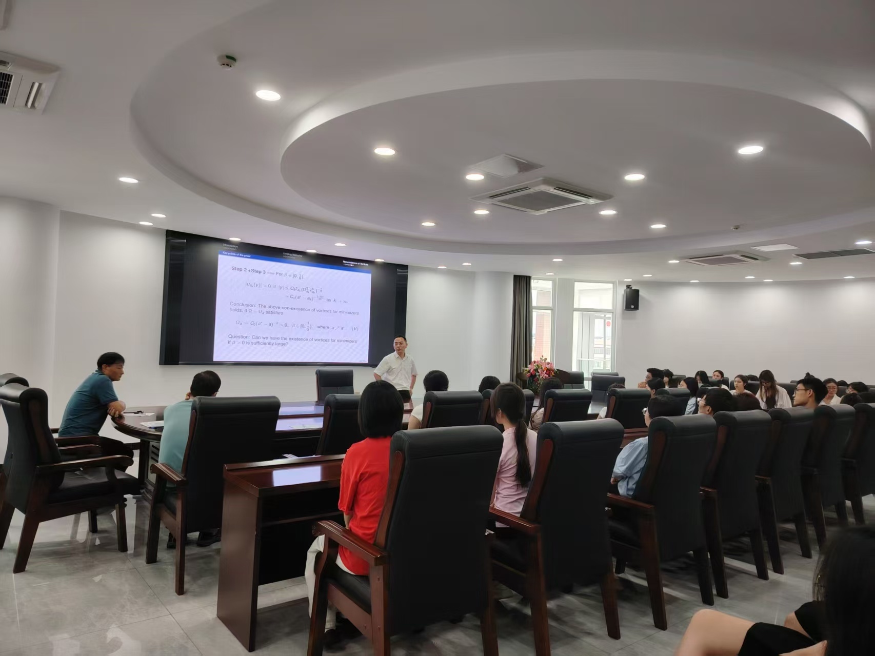 报告的最后,郭教授针对涡旋不存在性进行了专业解读。他从理论层面出发,结合前沿研究成果,向大家清晰地阐述了在非谐波势阱环境中,吸引玻色气体涡旋不存在的原理和依据。这一研究成果为相关领域的进一步探索提供了重要的理论支撑,引发了在场师生的热烈讨论。